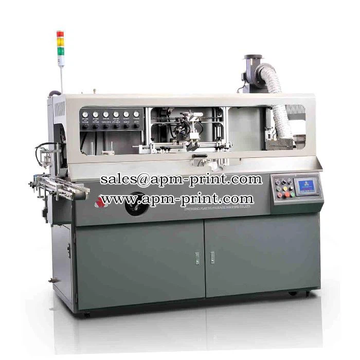 APM-S102 är utformad för flerfärgsdekoration av cylindriska / ovala / fyrkantiga plast / glasflaskor, koppar, hårda rörtryckmaskin vid höga produktionshastigheter. Den är lämplig för glas- och plastbehållare som skrivs ut med UV-bläck. Behöver registreringspunkt för flerfärgs cylindrisk flaskutskrift.